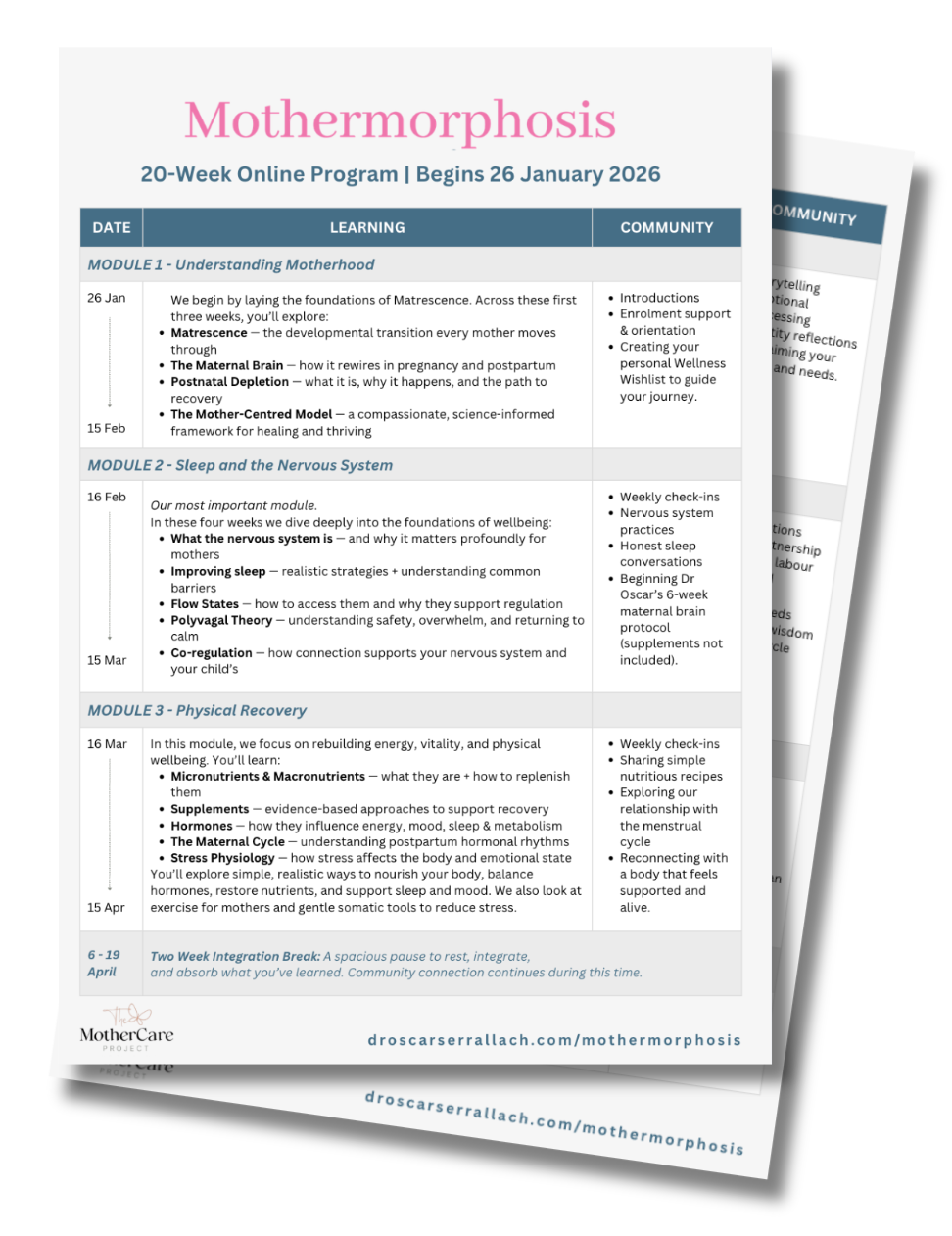 - Postnatal Depletion and become clear on the Mother-centric model of postnatal recovery that is championed by Dr Oscar, which will provide the framework for our journey together.