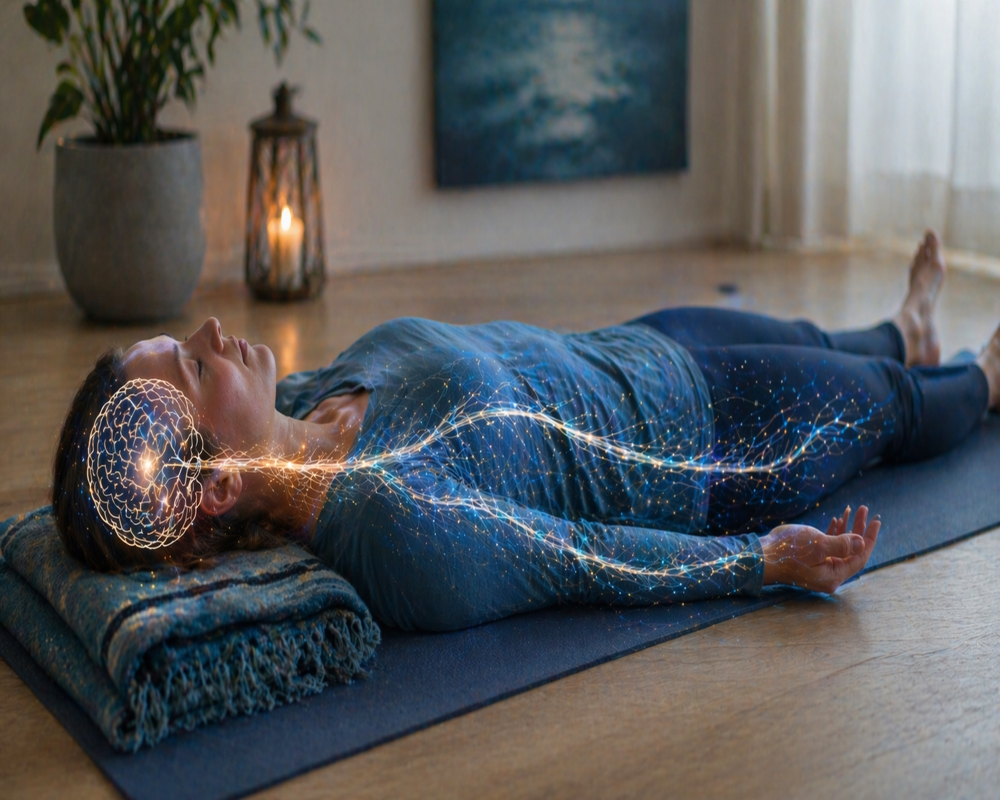 Yoga Nidra offers a direct pathway back to balance by interrupting the stress cycle, re-engaging the body’s natural relaxation response, and supporting both brain and nervous system recovery.